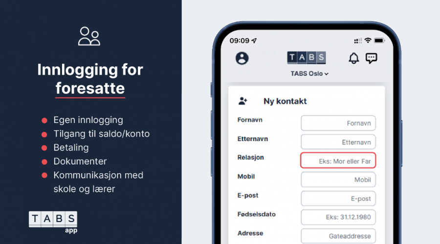TABS appen for elever og foresatte er tilgjengelig i AppStore og på Google Play.